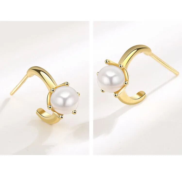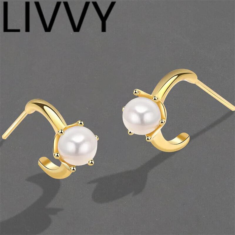LIVVY スタイル INS シルバーカラーパールイヤリングガール誕生日パーティージュエリー耳アクセサリー 真珠 指輪 銀