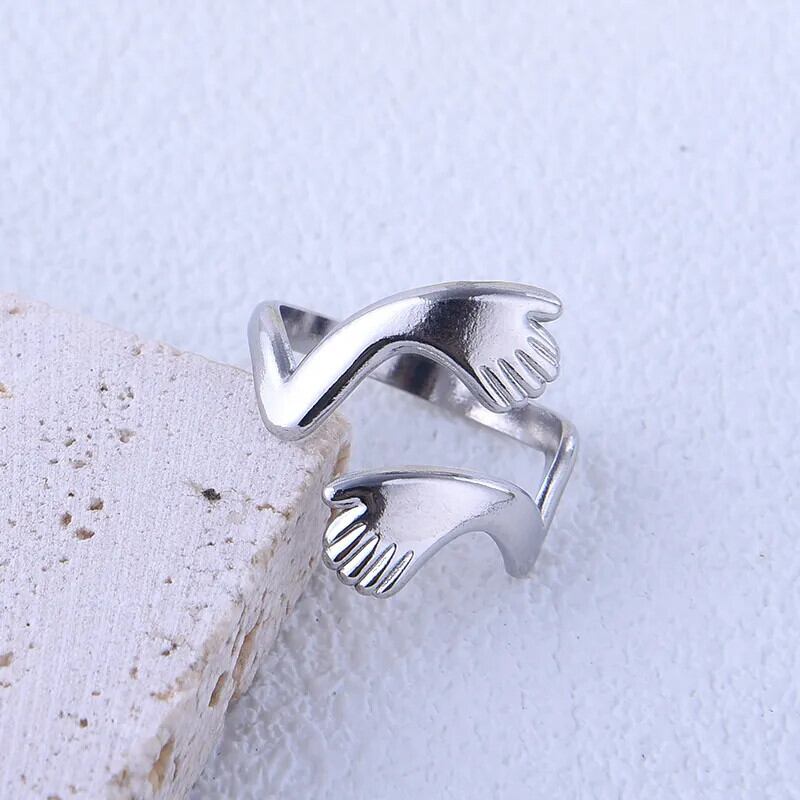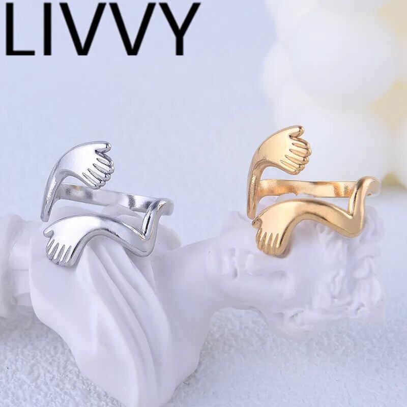LIVVY シルバーカラークリエイティブハグリング調節可能リングファインジュエリーギフト愛好家バレンタインデープレゼント アジャスタブル 指輪 銀