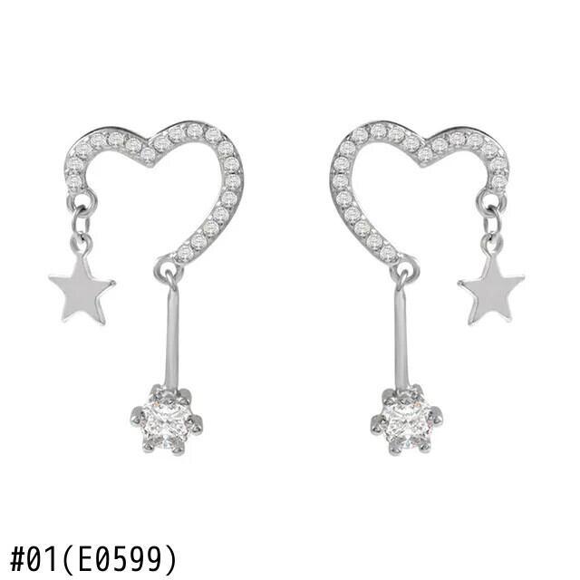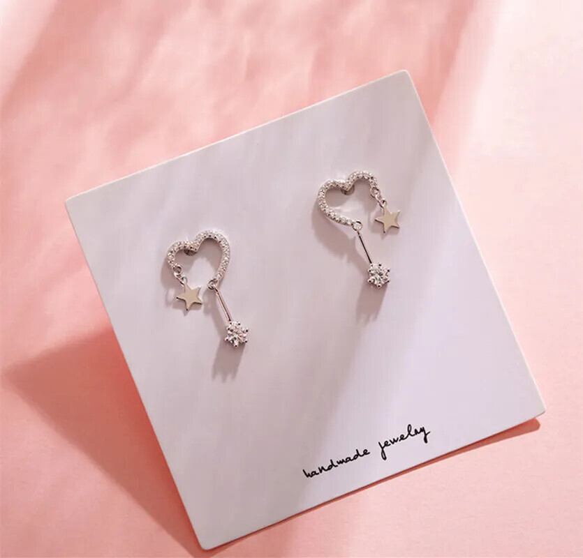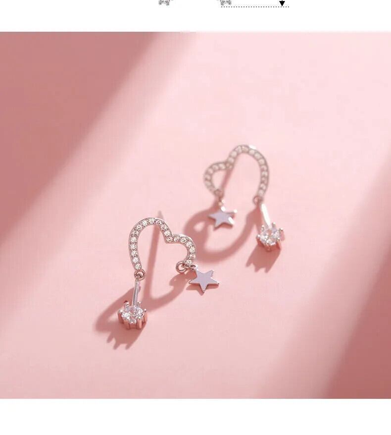 LIVVY シルバーカラージルコンラブハート星形イヤリングシンプル絶妙ジュエリーギフト 指輪 銀