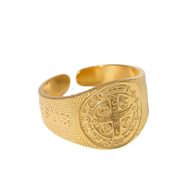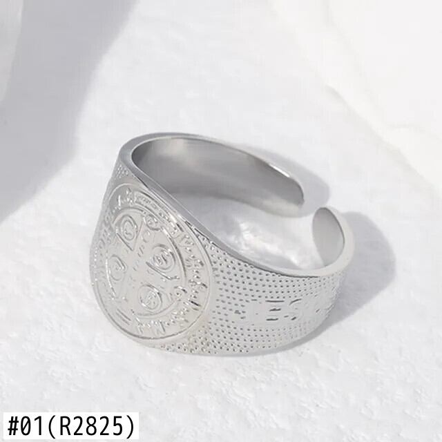 LIVVY シルバーカラーワイドリングアクセサリートレンディパンククロスパターン誕生日パーティージュエリー 指輪 銀
