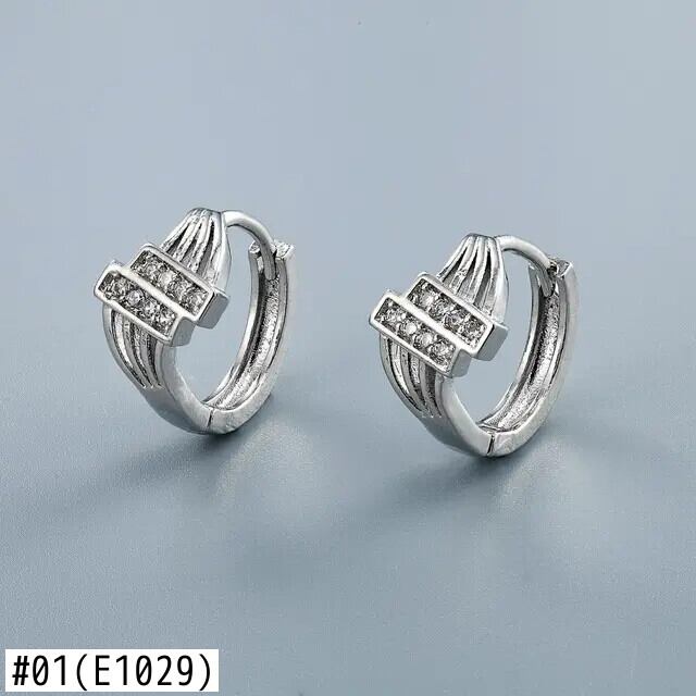 LIVVY ホットシルバーカラークリエイティブワープ幾何複列長方形ジルコンフープイヤリングジュエリーギフト 指輪 銀