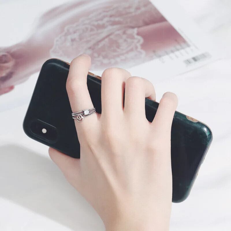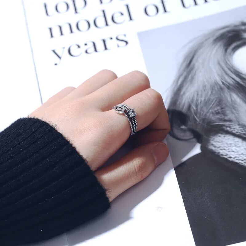 LIVVY シルバーカラーパンクスタースマイルフェイスオープンジオメトリリングイントレンドおかしいヒップホップジュエリーアクセサリー 指輪 銀