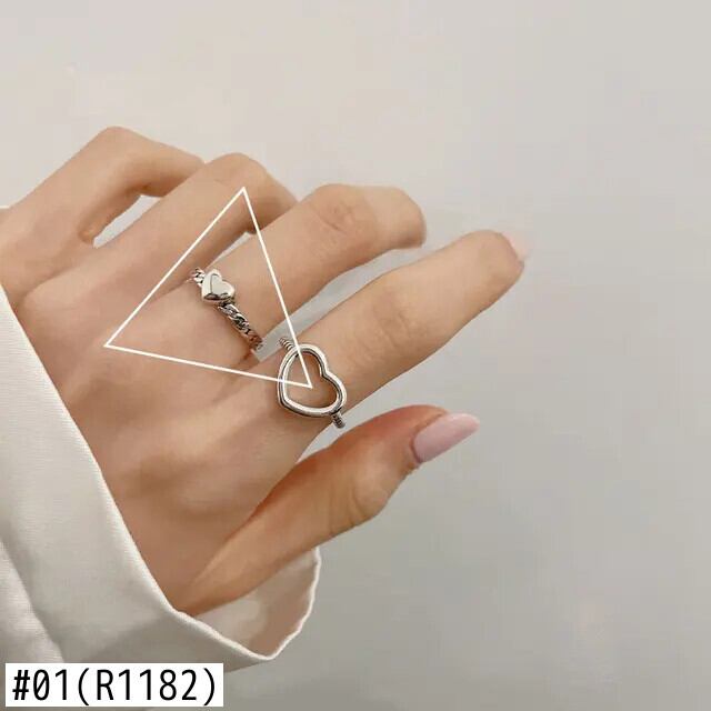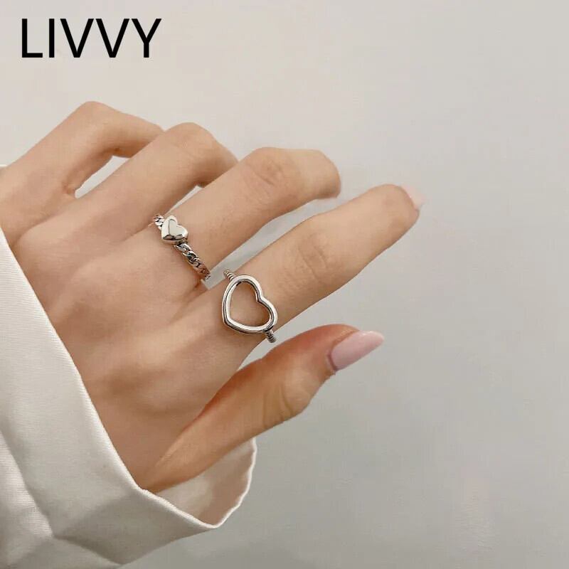 LIVVY シルバーカラーハートチェーン調節可能リングクリエイティブトレンディロマンチックジュエリー アジャスタブル 指輪 銀