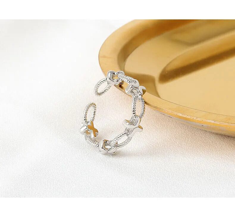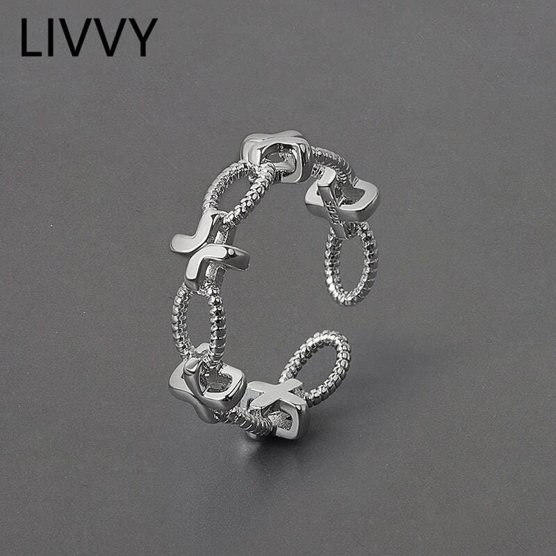 LIVVY ホットシルバーカラーサークル調節可能リングミニマリストガールジュエリーパーティーギフト アジャスタブル 指輪 銀