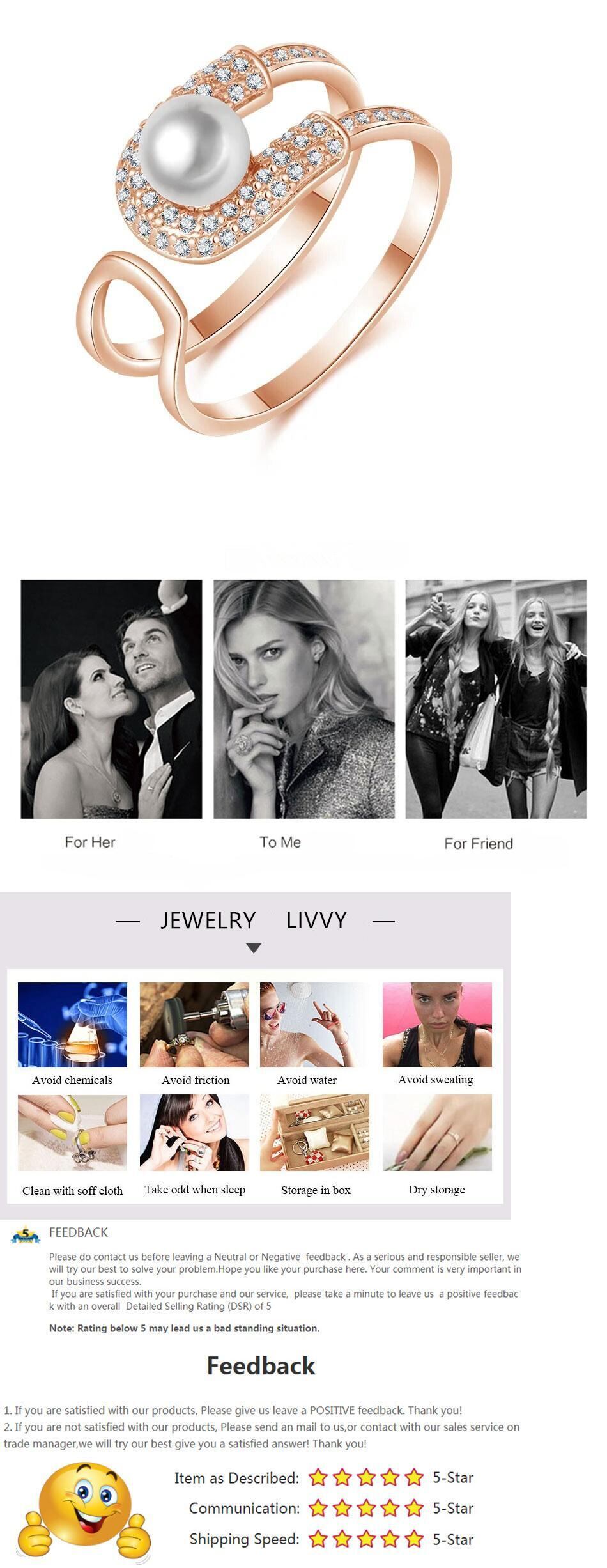 LIVVY シルバーカラースタイルパールジルコン二層リングロマンチックジュエリーパーティーリング 指輪 真珠 銀