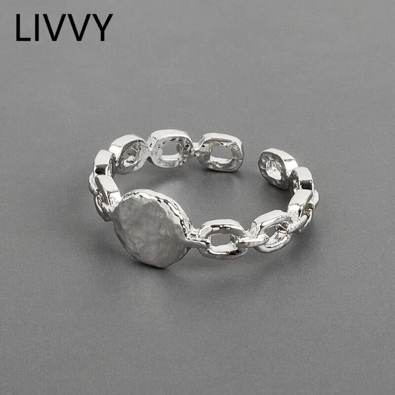 LIVVY INS シンプルシルバーカラーラウンドトレンディ調節可能リングジュエリーパーティーギフト アジャスタブル 指輪 銀