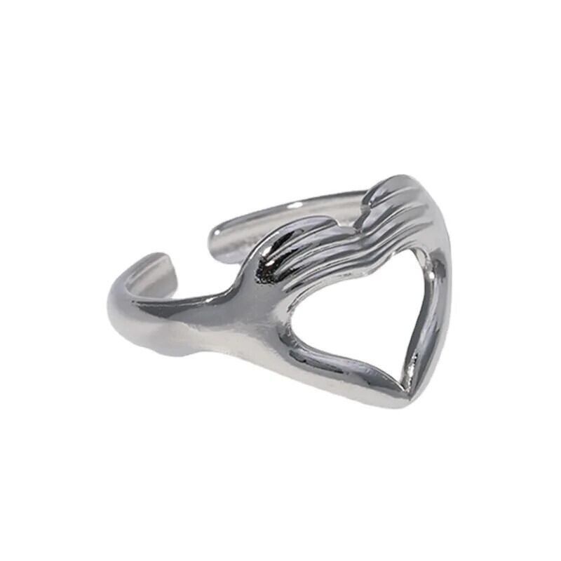 LIVVY シルバーカラー手ハート調節可能リングパーティージュエリーミニマリストアクセサリーギフト アジャスタブル 指輪 銀