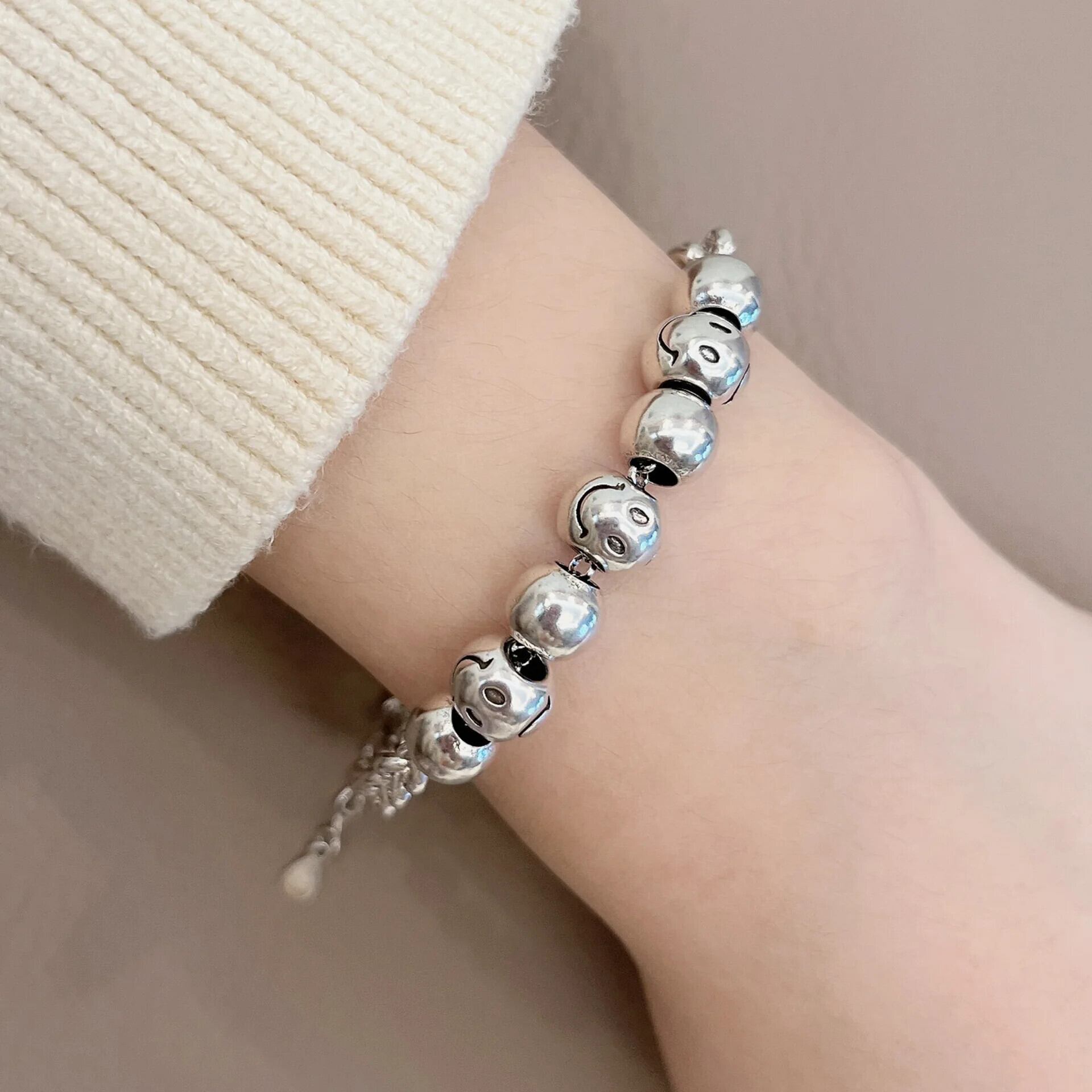 LIVVY シルバーカラー熱い販売ブレスレットインヒップホップシンプルラウンドビーズパンクパーティージュエリー Accessorize アクセサリー 銀
