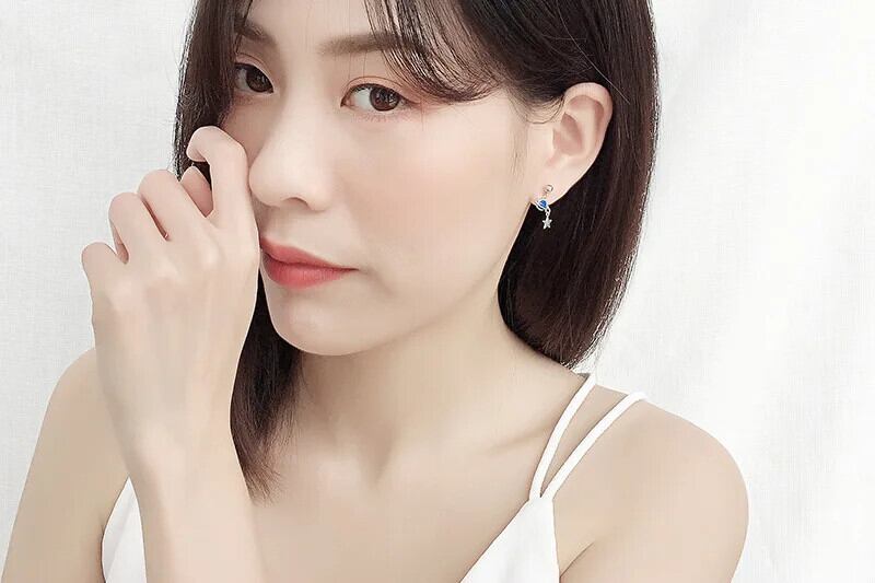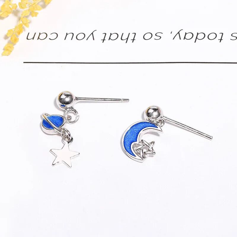 LIVVY シルバーカラー防止アレルギーイヤリングブルームーン非対称スタークリエイティブチャームジュエリーギフト 指輪 銀