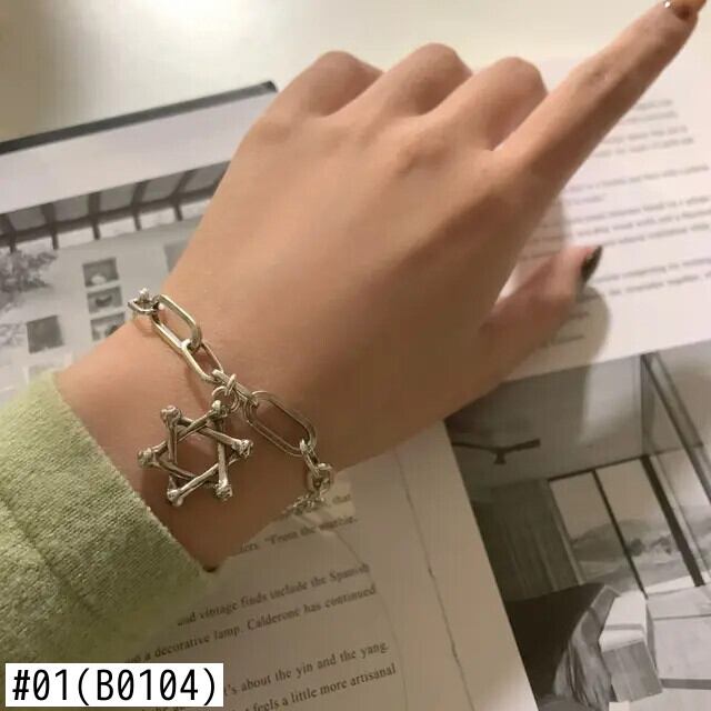 LIVVY シルバーカラーミニマリスト幾何学ペンダントブレスレットチャームクリエイティブパーティージュエリーギフト 銀