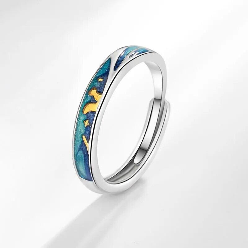 LIVVY スタイルシルバーカラーパンクシック幾何学調節可能開口部カップルリングはガールフレンドバレンタインギフトを与えます アジャスタブル 指輪 銀
