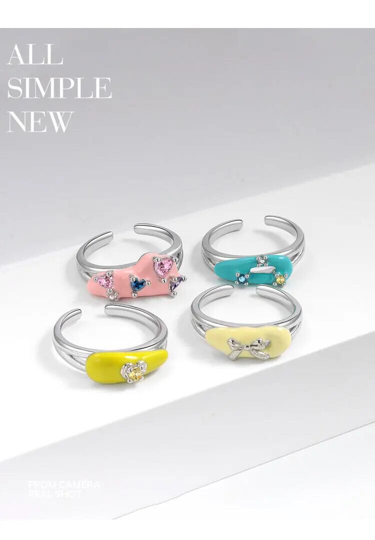 LIVVY かわいいシンプルシルバーカラーパーティージルコンリングガールクリエイティブカラフルジュエリーギフト 大人ガーリー スウィート キュート カジュアル 指輪 銀