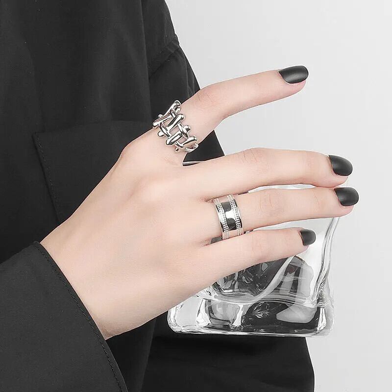 LIVVY シルバーカラーシンプル不規則織リング開口部調整可能パーティージュエリー Accessorize アクセサリー アジャスタブル 指輪 銀
