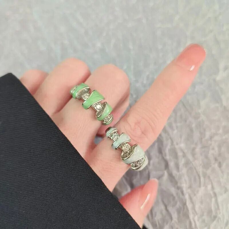 LIVVY シルバーカラー INS リングオイルツイスト幾何リングシンプルシック絶妙ジュエリーアクセサリー 指輪 銀