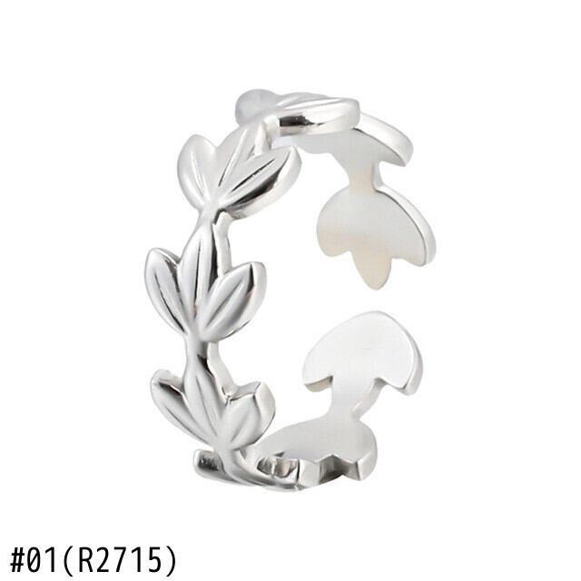LIVVY シンプルシルバーカラーリーフリングジュエリーオープン調節可能指輪女子誕生日パーティーギフト アジャスタブル 銀