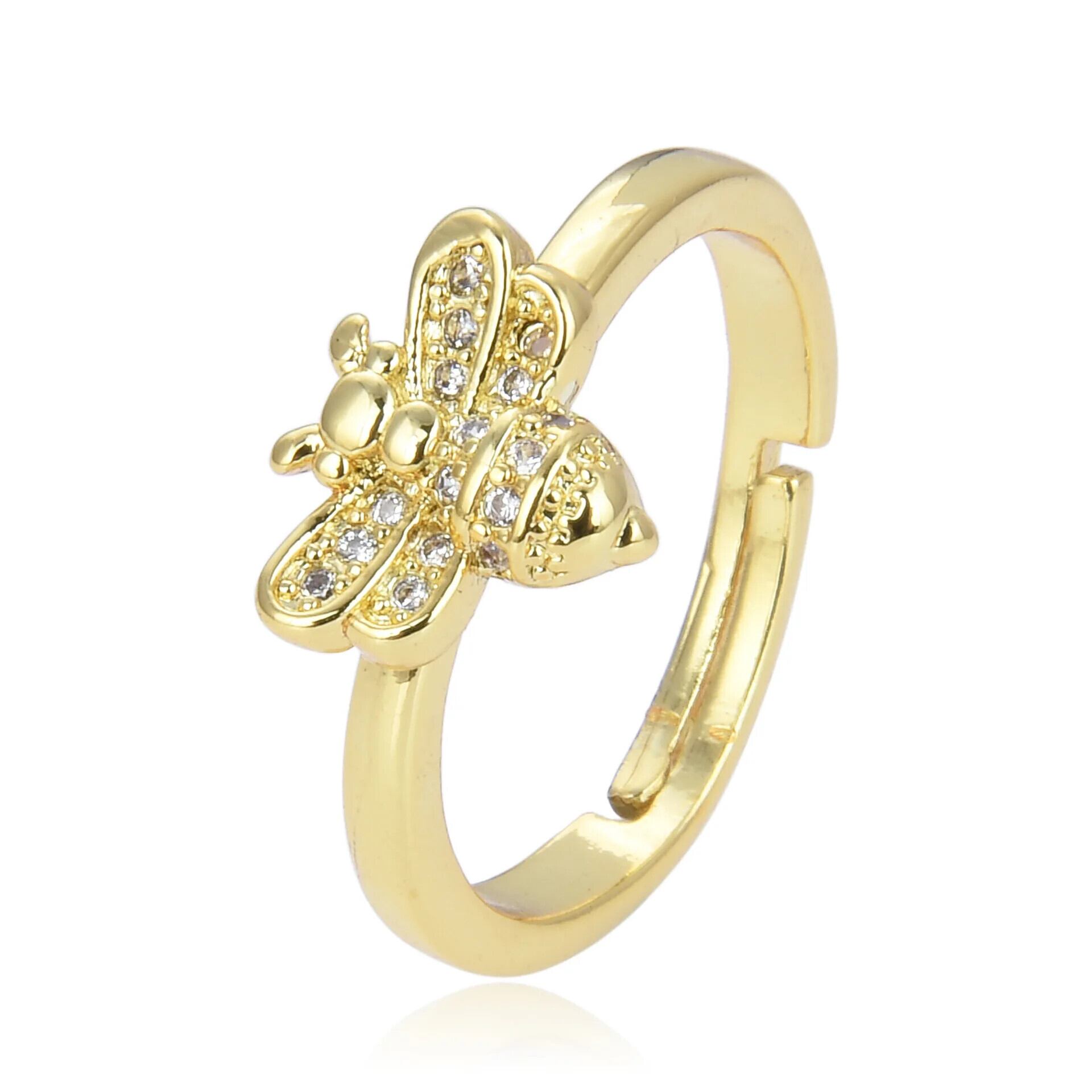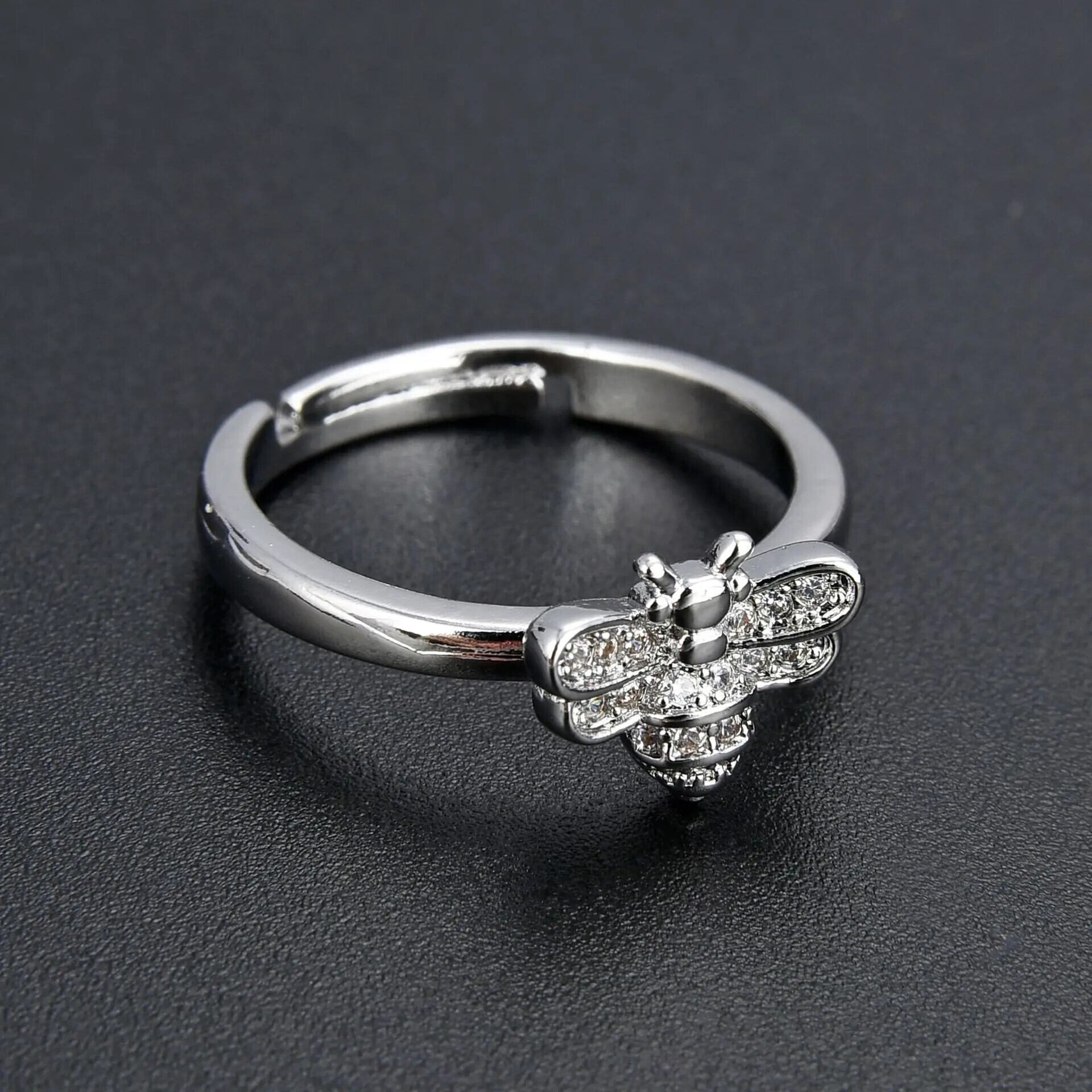 LIVVY ホットシルバーカラージルコン蜂オープン調節可能リングパーティー結婚式動物リングジュエリーギフト アジャスタブル 指輪 銀