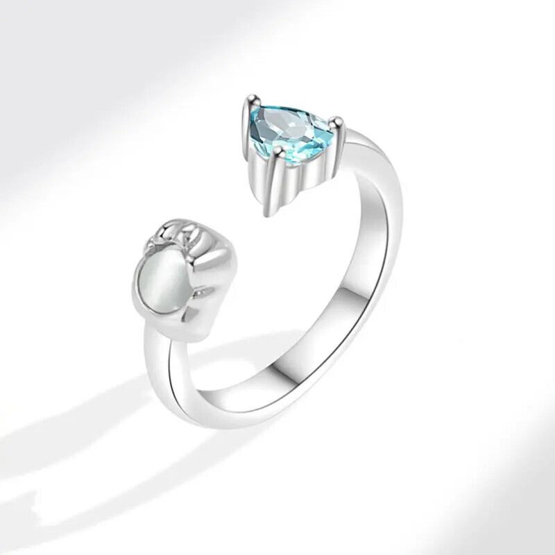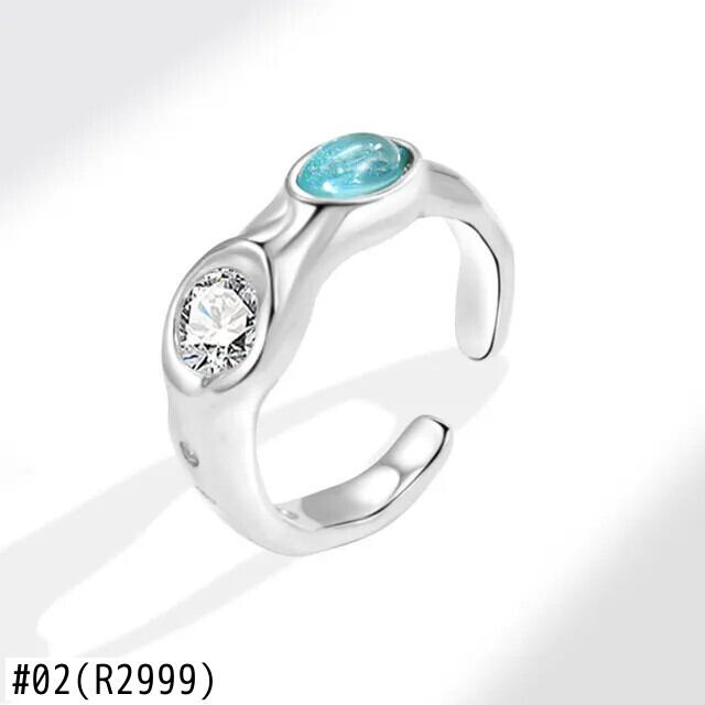 LIVVY ブルージルコンリングカップルクリエイティブシンプルパーティージュエリーアクセサリーギフト 指輪