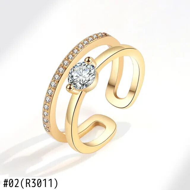 LIVVY シンプルシルバーカラージルコンリングクリエイティブ二層パーティージュエリーギフト レッド 指輪 銀