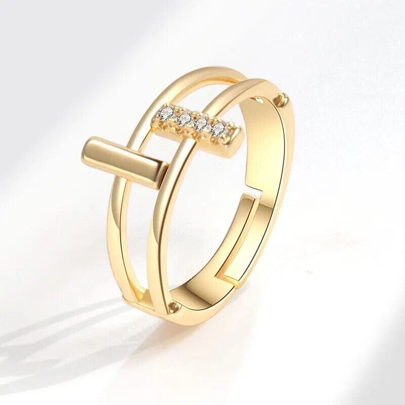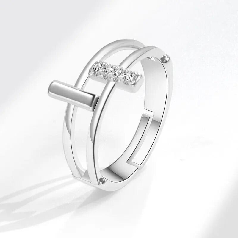 LIVVY シルバーカラーユニークジルコンラウンドクロス調節可能リングチャーム誕生日パーティージュエリーアクセサリー アジャスタブル 指輪 銀