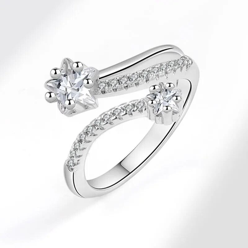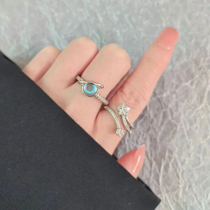 LIVVY シルバーカラーオパールリングカップルミニマリストトレンディクリエイティブ記念日ジュエリーギフト 指輪 蛋白石 銀
