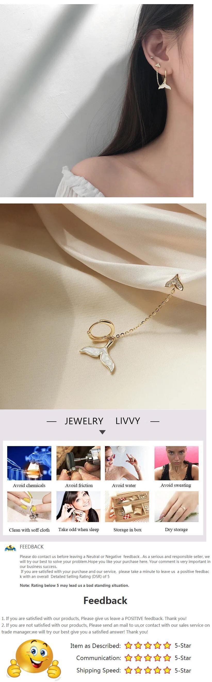 LIVVY クリエイティブフィッシュテールジルコン両耳ピアスイヤリング高級ゴージャス手作りジュエリーアクセサリー 指輪