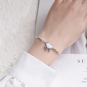 LIVVY シルバーカラー国民スタイルロングライフロックブレスレットレトロ高級バレンタインデーギフトウェディングジュエリー 銀