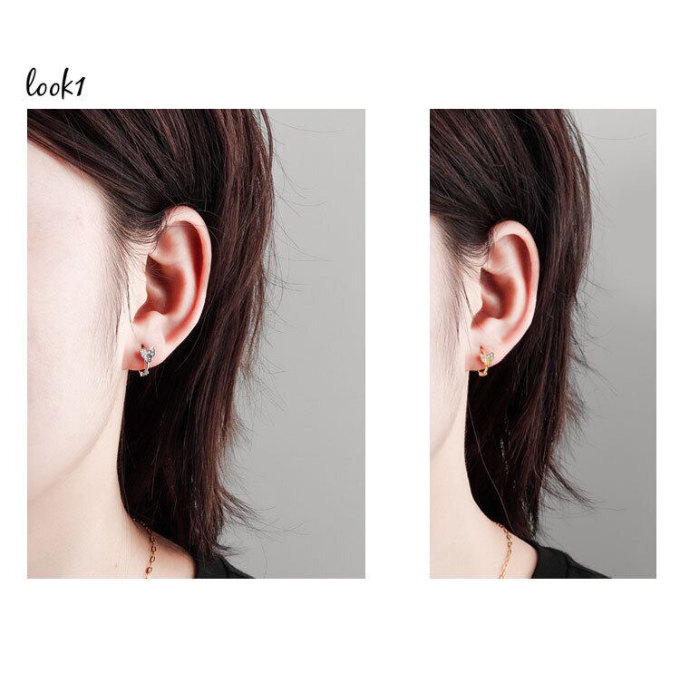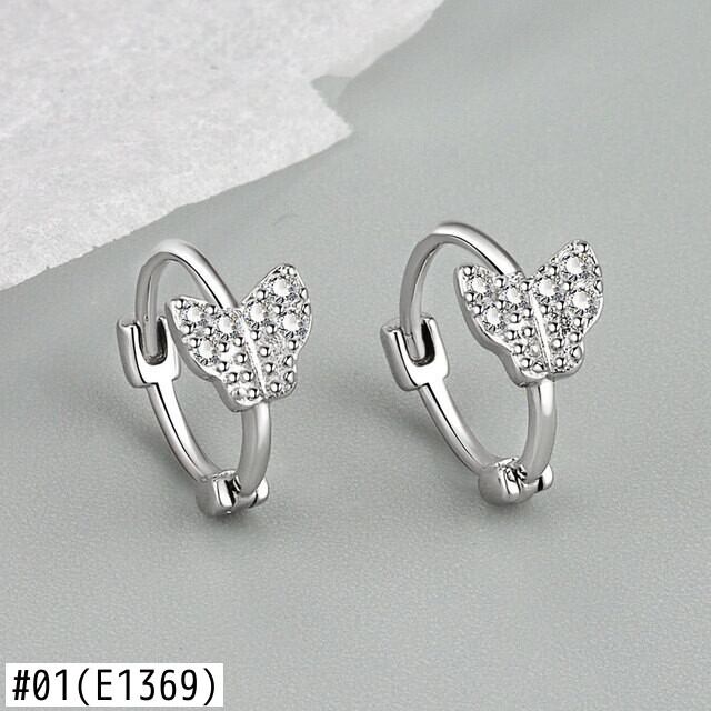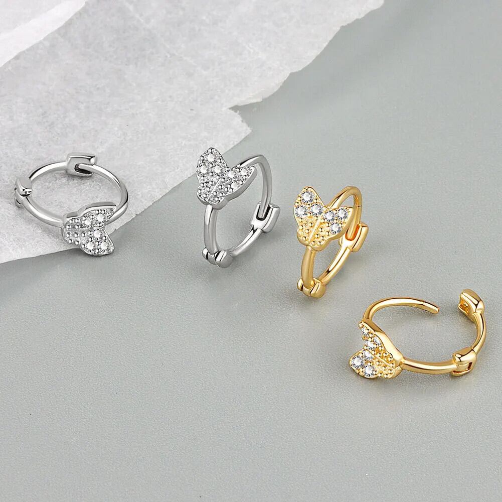 LIVVY シルバーカラー防止アレルギーフープイヤリングトレンディジルコン蝶パーティージュエリーギフト 指輪 銀