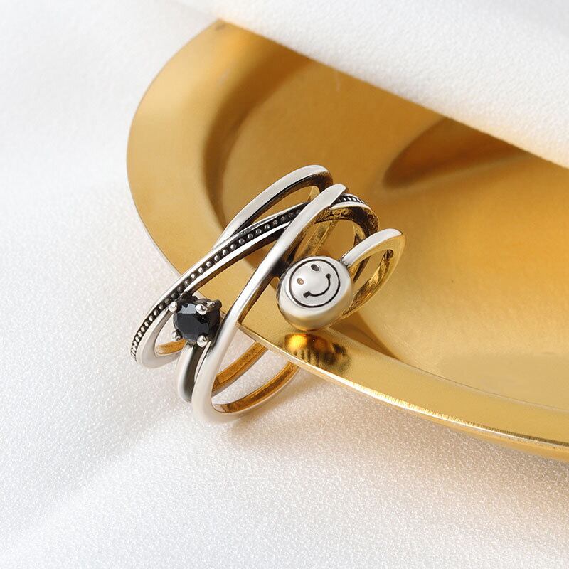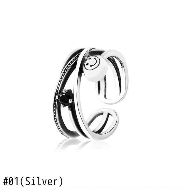 LIVVY シルバーカラーミニマリスト調節可能リング Clic 笑顔誕生日パーティーファインジュエリーギフト アジャスタブル 指輪 銀
