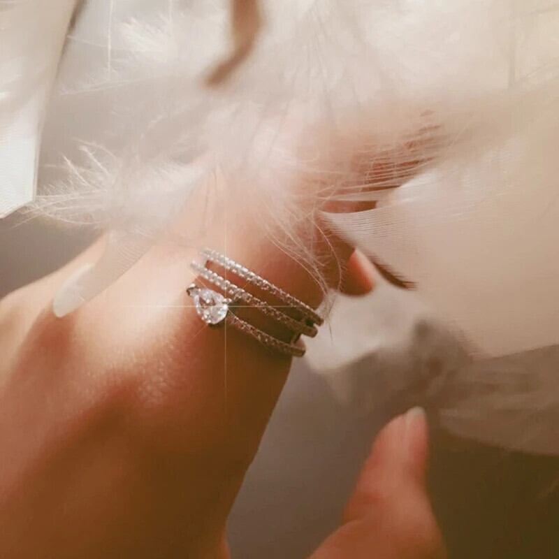 LIVVY Nieuwe Waterdruppel Natuurlijke Zirkoon Zilver Kleur リング Vrouwen Open Drie Lagen リング Bruiloft Unieke Mode-sieraden 指輪